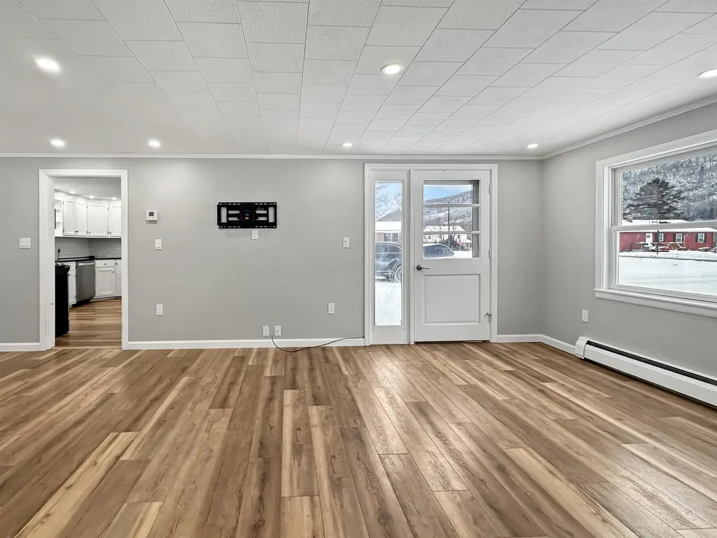 Discover the perfect blend of modern comfort and small-town charm in this beautifully renovated, single-level 2-bedroom home located on a quiet, dead-end street in Colebrook. Step inside to find a stunning kitchen featuring granite countertops, ample cabinetry, a pantry, plus a newer electric range and dishwasher as well as an open-concept dining and living area complete with built-ins. With a convenient first-floor laundry, an updated full bath, and spacious closets-including a dual-rod shelving system in the primary bedroom-you'll have storage options galore. Enjoy additional amenities like an enclosed porch connecting the house to the two-car garage, a new front deck, and a fenced-in area out back-ideal for pets. The full, open basement offers workshop space and built-in storage shelving, while all new updated lighting, paint, and new flooring throughout enhance the home's fresh, modern feel. You'll love living at the edge of town in a peaceful neighborhood of just five homes, mere seconds from the Connecticut River and the scenic River Walk. Plus, the proximity to schools, the hospital, and downtown shopping makes this location as convenient as it is beautiful. Don't miss the chance to call this Colebrook gem your new home!